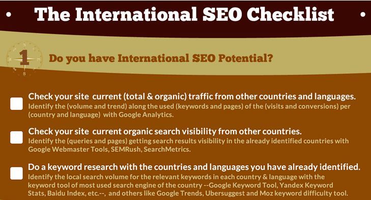时常的,出现在国际搜索结果里的机会比在你自己的边界里要大得多,并且有时竞争要少。看看是不是值得投资,看看这个Aleyda的国际SEO清单